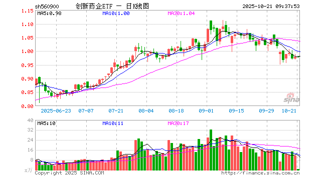 10月21日,创新药企ETF(560900)开盘涨0.10%,报0.979元。创新药企ETF(560900)重仓股方面,药明康德开盘涨0.98%,恒瑞医药涨0.57%,科伦药业涨0.44%,华东医药涨0.00%,长春高新涨0.35%,复星医药涨0.14%,泰格医药涨0.22%,百济神州涨0.52%,信立泰涨0.48%,通化金马涨0.41%。