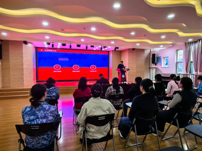 高教官从燃烧的基本知识、燃烧的类型、火灾形成的条件、如何预防火灾及发生火灾如何正确逃生五个方面向教职工进行讲解,深入浅出地讲解了:日常生活、工作以及学习中……隐患藏在哪里?火场逃生原则: 冷静、捂口鼻、低姿前行等。