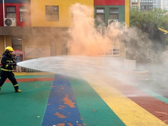 “呜呜呜——”刺耳的消防警报声急促响起!与此同时,模拟烟雾喷出的浓烟迅速弥漫在教室的走廊以及操场,用逼真的场景复刻火灾突发状况,一场实战化消防演练正式开始。