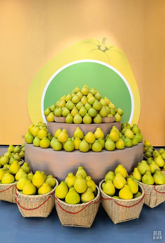 △梅州金柚,果形似梨,果肉晶莹,肉质脆嫩化渣、清甜爽口。(总台央视记者石伟明、赵化拍摄)