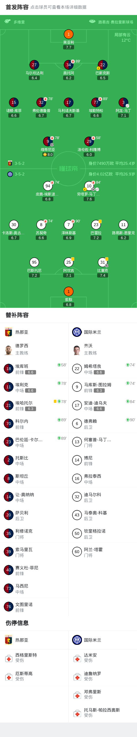北京时间12月15日,意大利足球顶级联赛第15轮展开较量,热那亚坐镇主场迎战国际米兰。比赛中国际米兰率先打破僵局,比塞克接劳塔罗-马丁内斯的助攻完成破门。随后劳塔罗-马丁内斯扩大比分,为球队取得两球领先。易边再战,热那亚展开反击,维蒂尼亚在阿龙-马丁的助攻下扳回一城。此后双方均无建树,最终全场比赛结束,热那亚以1比2不敌国际米兰。
