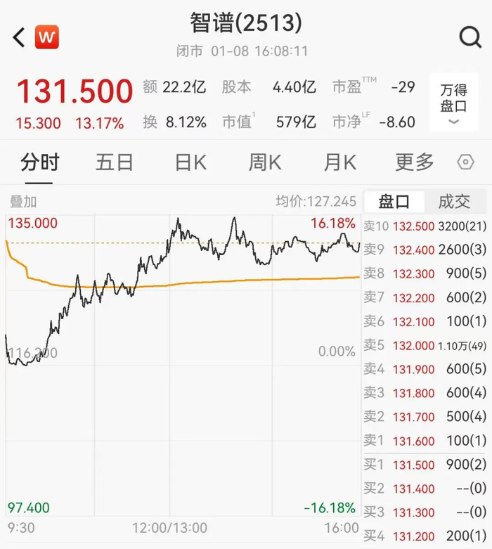 1月8日,备受瞩目的北京智谱华章科技股份有限公司(下称“智谱”)正式在港交所挂牌上市,成为名副其实的“全球大模型第一股”。尽管上市首日股价走势跌宕起伏,但最终收盘上涨13.17%,报131.5港元/股,公司市值突破570亿港元大关。