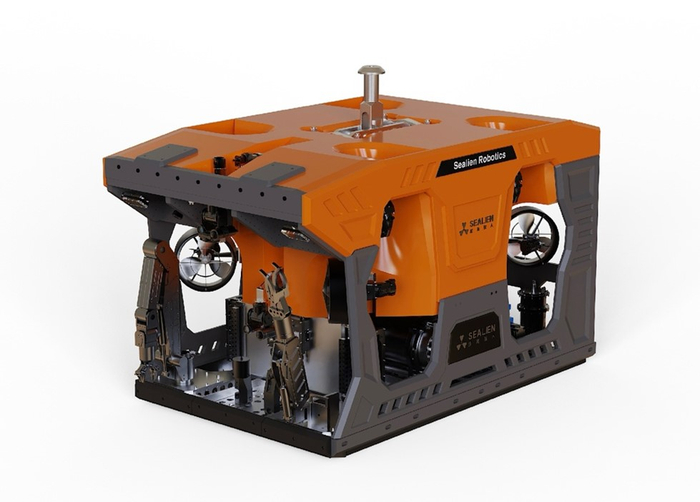 翟浩苇至今仍对第一次到访深海智人的情景记忆犹新,在公司一幅巨大的深海场景图前,马亦鸣逐一指着每一处有机会涉足的场景以及对应的机器人产品,讲述着公司未来的前景。“那一刻,我能够感受到他们的野心远不止眼前,他们有具备成为海洋科技平台型公司的潜质。”翟浩苇笃信。2012年3月,好莱坞导演詹姆斯·卡梅隆曾驾驶其单人深潜器“深海挑战者”号成功下潜至大洋最深处——马里亚纳海沟。在万米海底,他停留了6个小时,用高清3D摄像机拍下了大洋最深处的奇观。1年后,这部3D纪录片《深海挑战》制作完成。作为多年潜水深度爱好者并持证PADI Rescue Diver的蔡伟对这部影片印象深刻。“深海里没有光线,在一片黑暗里,探索未知本身就是一件很酷的事。而深海智人,就是那把打开深海新世界的钥匙。”蔡伟表示。属于深海智人的时代,才刚开始。 海底重载作业机器人金牛座1600
