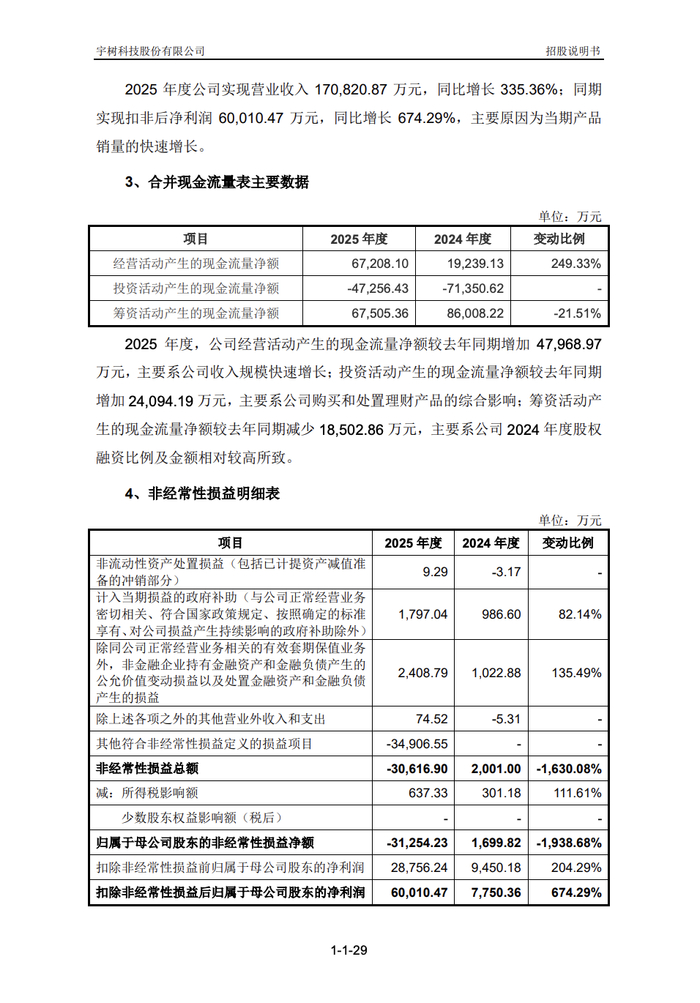 IT之家 3 月 20 日消息,宇树科技今天在上交所披露的招股说明书显示,2025 年度公司实现营业收入 17.08 亿元,同比增长 335.36%;同期实现扣非后净利润超过 6 亿元,同比增长 674.29%,主要原因为当期产品销量的快速增长。