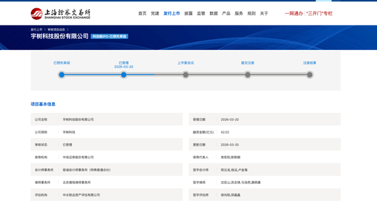 3月20日,上交所官网显示,宇树科技股份有限公司(以下简称“宇树科技”)的科创板IPO申请获上交所受理,成为又一家科创板IPO“预先审阅”落地项目。