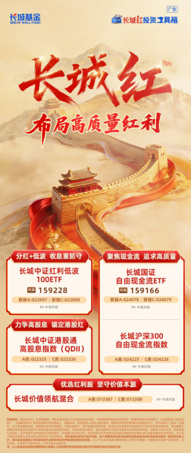 近年来,长城基金持续完善“长城红”投资工具箱,已形成覆盖A股与港股、兼顾股息与现金流的“长城红”投资版图,力争多方位满足投资者对稳健权益资产的配置需求。